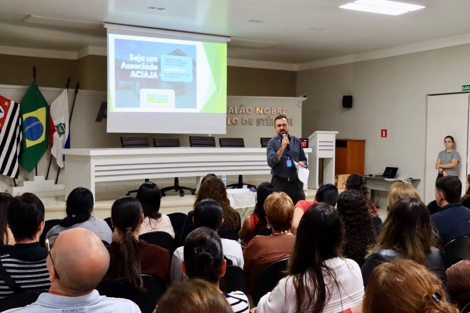 Representando a diretoria da ACIAJA, Veridiana Gerbasi Pedrazzoli, destacou a importância da capacitação. “A casa está cheia, e ficamos muito satisfeitos em ver o interesse sobre o assunto, que é tão importante para o aperfeiçoamento do nosso Comércio. Nossa comissão de cursos, palestras e treinamentos está programando uma série de encontros ao longo do ano, sempre com foco em resolver as dores do nosso setor. Vamos procurar trazer os melhores profissionais para compartilhar conhecimento com toda a cidade.”
